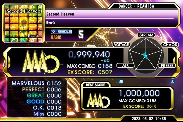 2023年5月2日のオチはもちろん、「Second Heaven」。[SINGLE BASIC]譜面である。 #DDR_A3