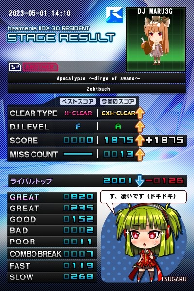 Apocalypse ~dirge of swans~穴、EXH。そう言えば『Apocalypse』ってきょく、2つあるんだね。。。 #弐寺