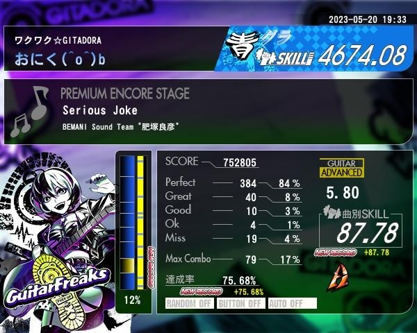 上げ忘れ4曲です。 これは新プレアンのギターです。めちゃ難しかった( ´;゚;∀;゚;) 黄ベースは運良くSS出せたからギターを頑張る!
