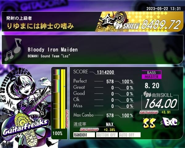 今回はちゃんとメンテいいとこに行ってやってきました。筐体相性は悪いから苦戦したけど… エクセ398曲目。