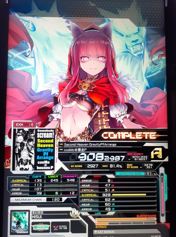 ボルテのセカ天赤(14の方)S乱 ···すごいな?とんでもなく苦手な譜面だった。多分難しめの15くらいあったぞ······ むしろよくクリア乗せられたもんだよ。めちゃくちゃ怖い
