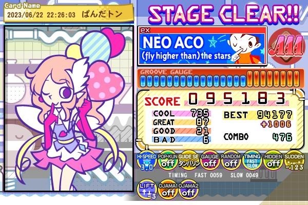 ネオアコEX スコア更新AAA。ようやく95k超えたし!