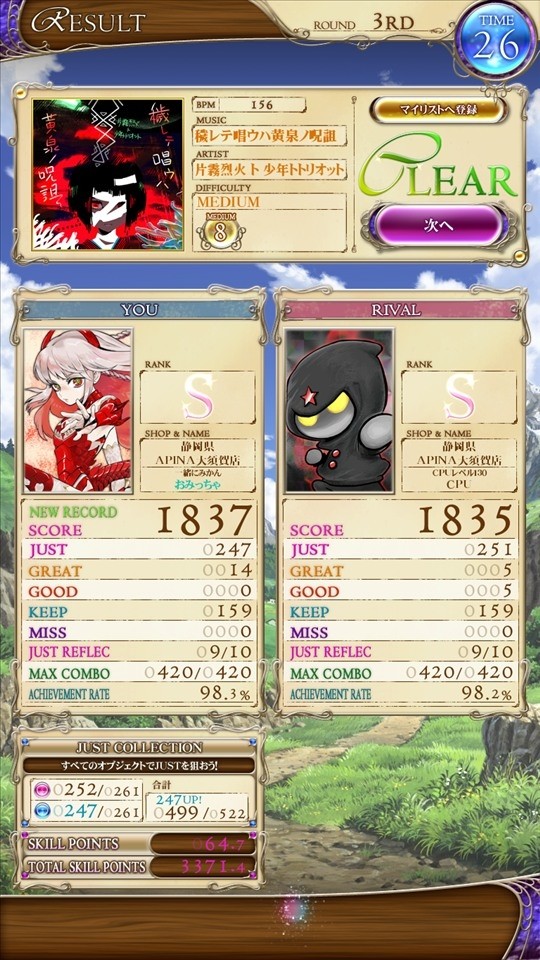 さ~て、こっちの曲はどうでしょう?MISSは消えましたが、相変わらずGREATは二桁と前途多難です。