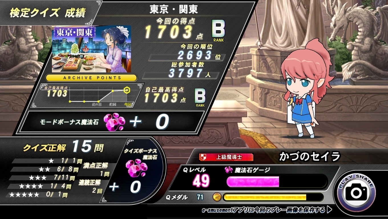 【QMA】東京・関東検定、2回目でBランクを出せました(・ω・)