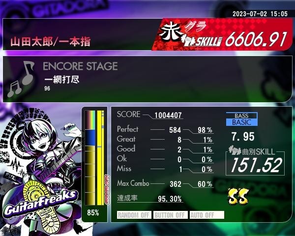 おお! 一本指での離れた二色の押し方成功しました✌️ 運良く入ってくれたけどMiss1ヶ所惜しかったです🤧🤧