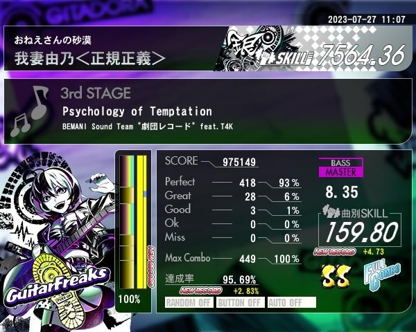 Psychology of Temptation 紫bass 正規 は28-3 SS+FCした。35-13脱法双色二連符を克服した。プレイ回数は4回です。三連発です。#ギタドラ #正規正義 Psychology of Temptation 紫bass 正譜 28-3 SS+FC。克服了35-13犯法雙制二連音。4回,三連發。