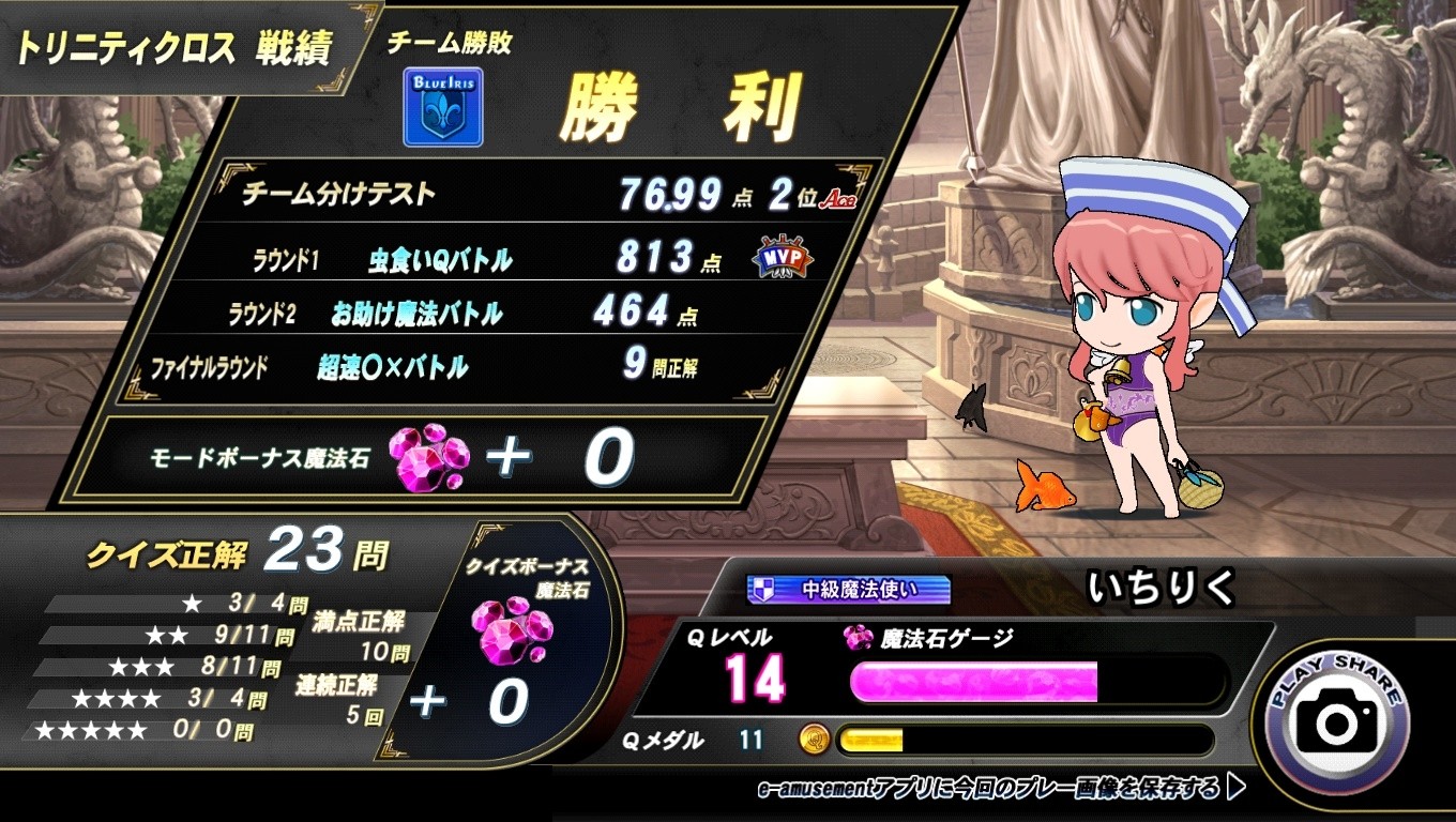 この回は競り勝つ。 しかしやっぱりCOMの当たり外れで輸贏が左右される運ゲー。 トリクロは合わせ以外だと人稲杉で丁半と化す。