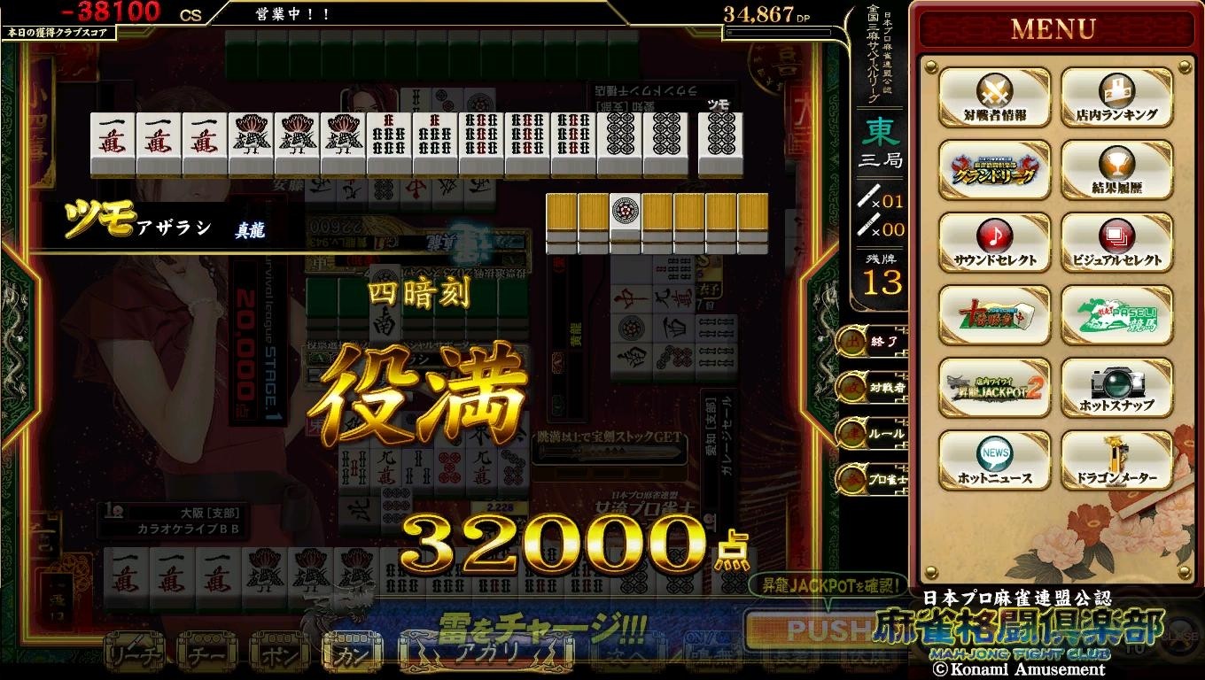 「役満は四暗刻が好き!」 四暗刻は17回目(15回+単騎待ち2回)でした(*´∀`)♪ 全モード通算99号役満で100号に王手(⊃∀`* )♪