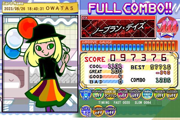 好きな曲やっとフルコン、Sは届きそうで届かない