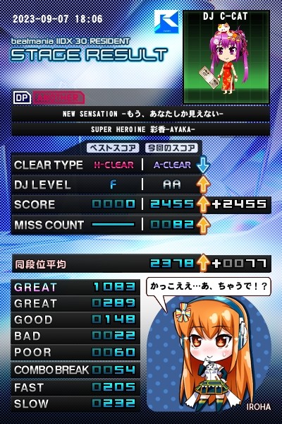 このリザルト画像に残せないのが残念ですが(ゲーム画面直撮りするしかない)、 辻斬り隠れキャラに勝てました #IIDX