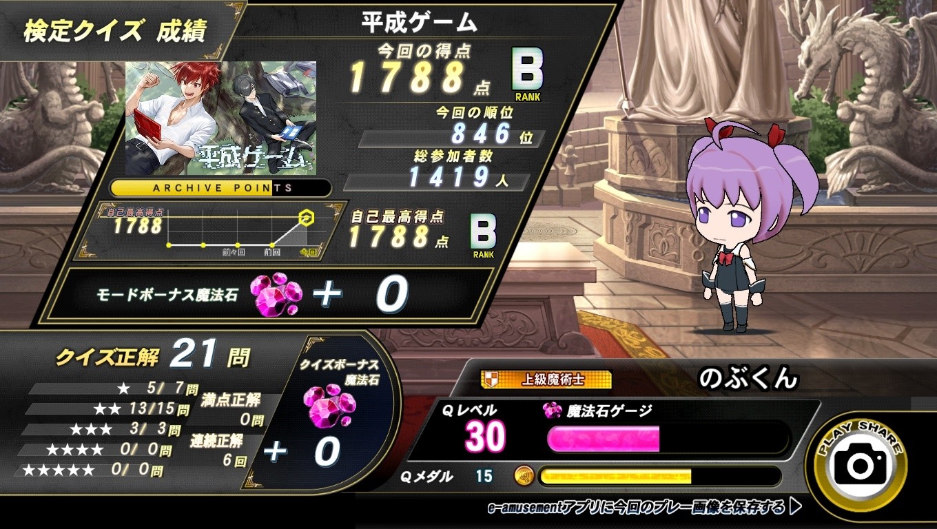 検定〜平成ゲーム 初回でBランク出ました。