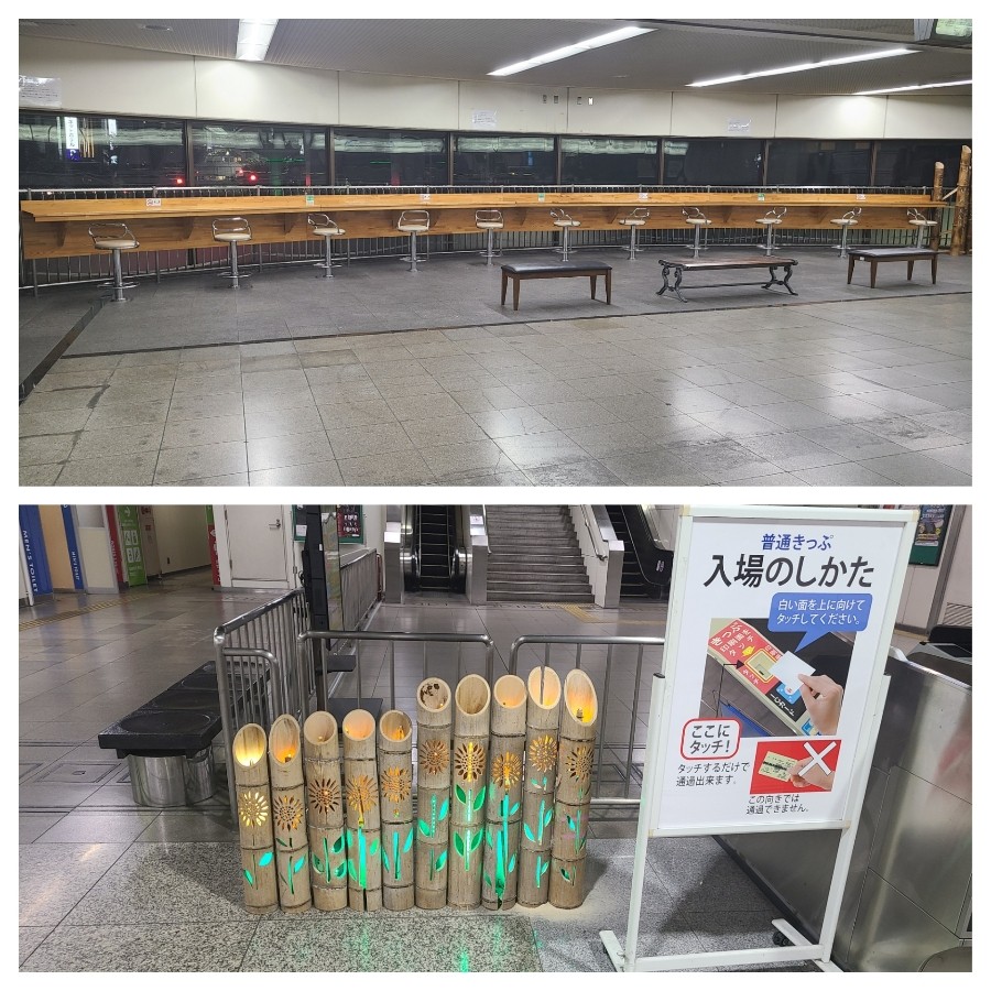 おまけ投稿。 上➞平和通り駅改札外の多分フリースペース。 下→平和通り駅改札外のモニュメント。