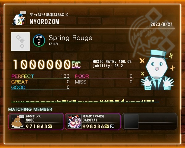 週のおすすめ楽曲から、この曲をプレイして、再エクセ成功です。