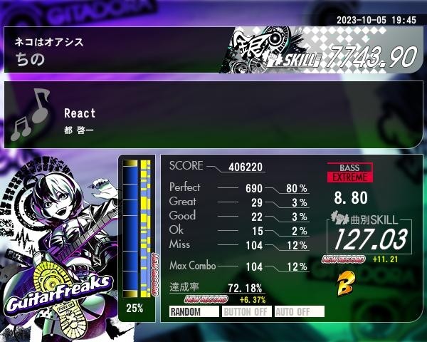 久しぶりにやりましたがやはり難しい。以前はゲージギリギリで落ちかけてましたが今回はそれがなかったので成長してると思いたい。