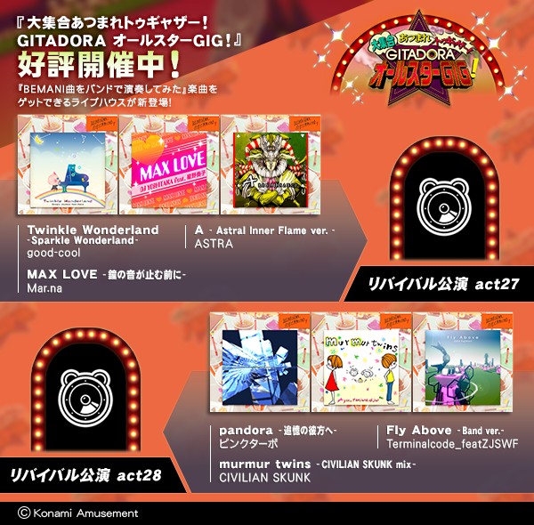 【欲しかったあの曲も大集合!】 『大集合あつまれトゥギャザー! GITADORAオールスターGIG!』開催中! 10/18(水)より『BEMANI曲をバンドで演奏してみた』の楽曲を誰でもゲットできる新ライブハウスが登場! #GITADORA #GITADORA_FUZZUP