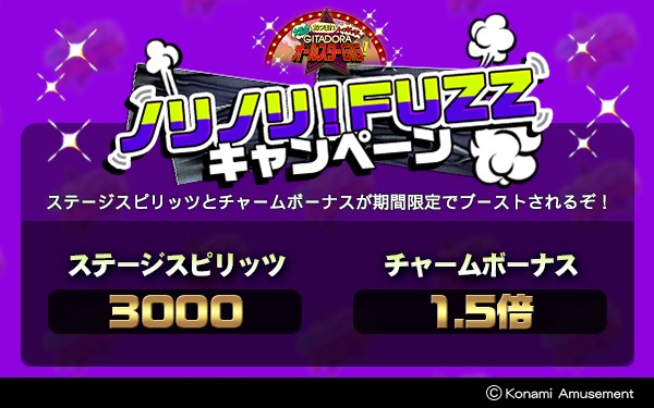 【バンドスピリッツが大幅アップ!】 『大集合あつまれトゥギャザー! GITADORAオールスターGIG!』開催中! なんと10/18(水)から11/19(日)までバンドスピリッツがノリノリにFUZZっちゃうキャンペーンが始まるぞ! このチャンスにライブハウスをどんどん制覇しよう! #GITADORA #GITADORA_FUZZUP