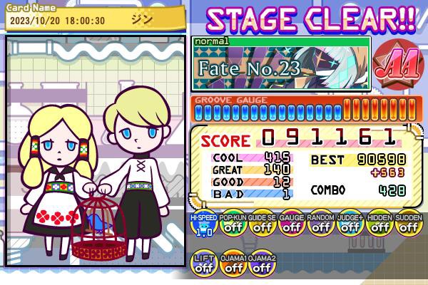 Fate No.23(N)+ノースピでスコア更新♬。でもBAD1残念賞。(悔)