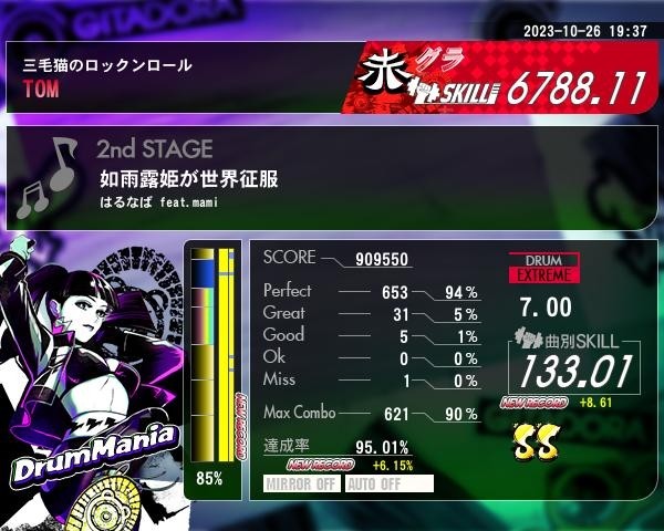 如雨露姫赤D 何とかSSに スネアロール途中で切られるとムズいですよ( ゚ェ゚)