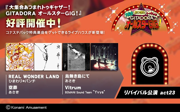 【欲しかったあの曲も大集合!】 『大集合あつまれトゥギャザー! GITADORAオールスターGIG!』開催中! 11/1(水)より「コナステ GITADORA HISTORYパック vol.15」と「コナステ GITADORA HISTORYパック vol.16」の特典楽曲4曲をゲットできる新ライブハウスが登場! #GITADORA #GITADORA_FUZZUP