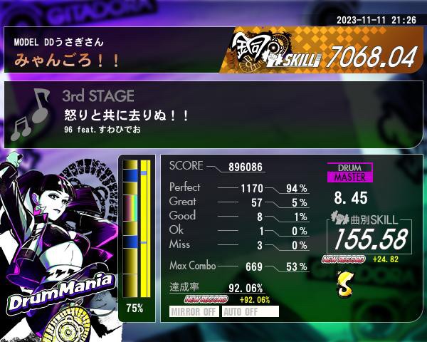 この曲BPM180あるんですが、 何故がすごくパフェ出やすい謎!_(:3 」∠)_
