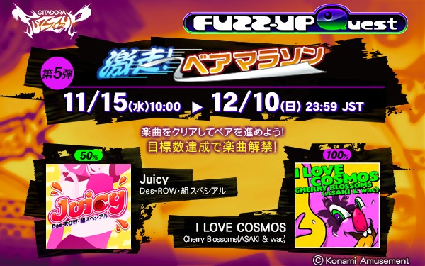 【FUZZ-UP Quest 第5弾 激走!ベアマラソン 開催】 11/15(水)より #ギタドラ にて「FUZZ-UP Quest」第5弾「激走!ベアマラソン」を開催! 楽曲クリアするたびにオトベアがゴールに向かって進みます。 達成状況に応じて新たな楽曲が解禁! #GITADORA #GITADORA_FUZZUP