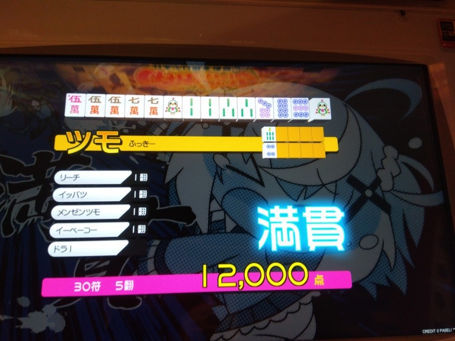 本日の東風は、1-0-2-1でした。。。 CPUにやられるパターンが多いですねぇ(・_・;) まだ対人の方が何とかなってるようです。 追伸、高目残り一枚でも思い切ってタテナオリ(๑•﹏•)