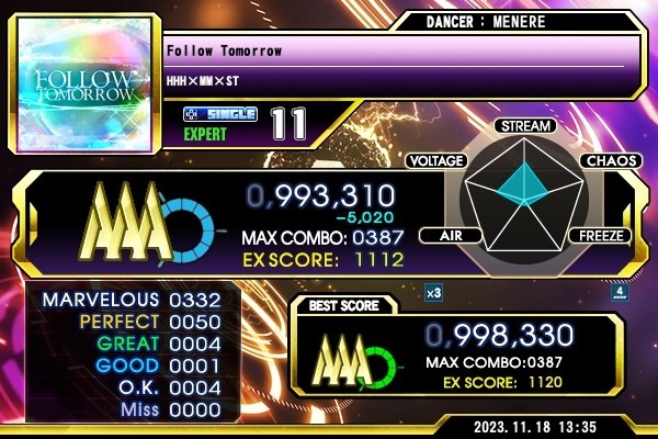 フォロートゥモロー 激譜面です。 この曲、ダンアラに来ましたね。 この曲のDDRの鬼譜面、ダンアラの赤譜面、待っております。
