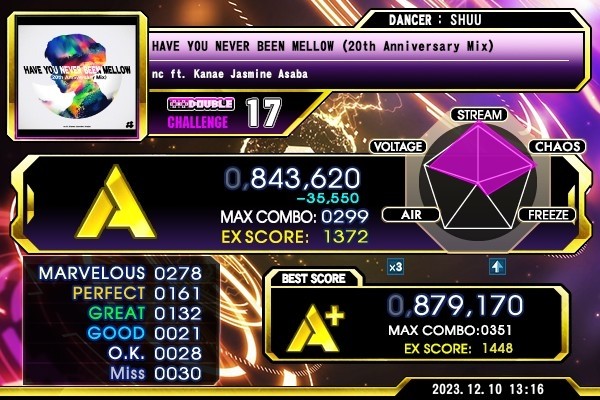 なんだろう。 発狂中央切り返し譜面になると、 踏んでるつもりなのに踏めて無くてゲージが消えていく。 この現象を解決するためにも、KONAMIさん、 筐体カメラの導入を急ぐのです!