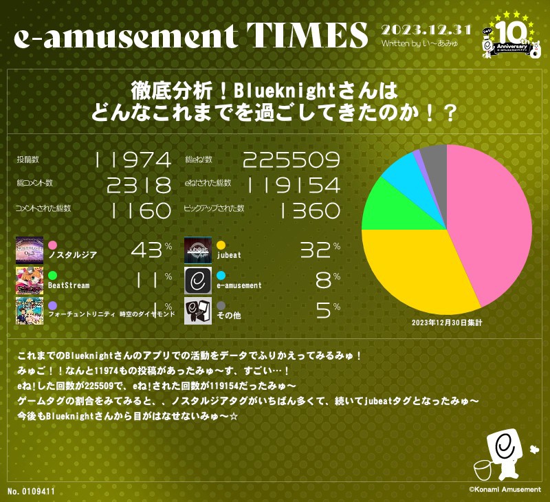 【これまでの投げ込みを振り返る】 まだノスタルジアが一番ですが、jubeatが比率トップに入れ替わるのも時間の問題かも。 フォーチュンのタグ名が数値に被さってますよ。