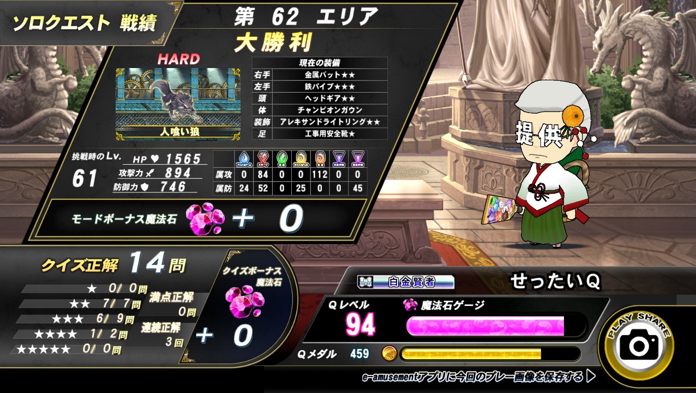 また君か… 中3日で校長の代わりにボコられた可哀想な狼さんでしたが盾は落としてくれませんでした 校長ソロを周回していると盾が徐々に貯まってきますが出撃画面の装備品の画面がパッと出た時に盾で2ページくらい埋め尽くされてて正直ジャマだと思いました(笑) 盾よりも武器が先にきてほしいんですよー!