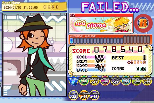 道中は僕のプレイレベルでもクリアラインを拝む事が出来るくらいの難易度ですが、同時押し乱打地帯から徐々に削られて最後オーバーキルされますorz