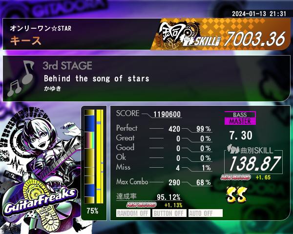 Behind the song of stars紫B伸びてSS乗ったのは良いのだけどグレグド0ミス4て。エクセ圏内やん頑張ろ