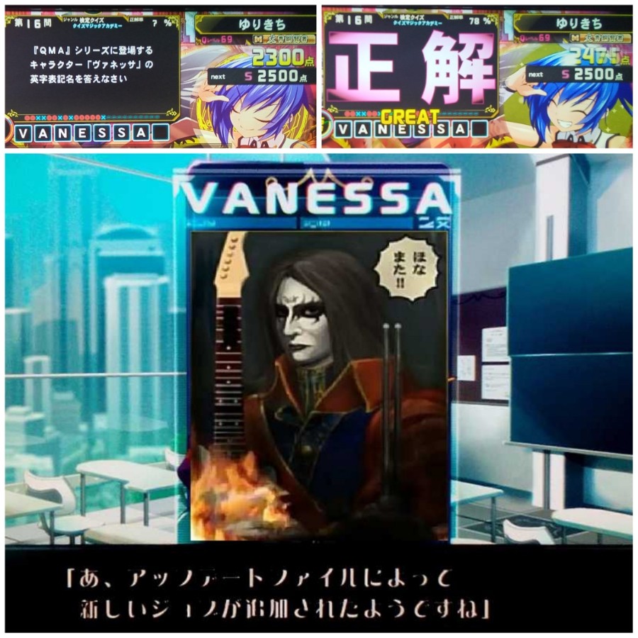 その続きでジョブ解禁された時のコラ画像。 朱雀絡みで自分だけが散々擦り倒したネタ。 VANESSA通常版と転生版は作りましたが 双璧では作ってないですね(誰も期待してない) ギタドラのムービー復活マダー?(ここで言うな) #問題整理中 ちなみにキャラの英語表記は自分もよく間違えましたが https://p.eagate.573.jp/game/qma/12/p/about/chara.html#top TGのキャラ紹介ページにうっすら書いてありますので便利ですよ。 (ランキング実質終了日に言うな)