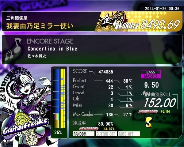 Concertino in Blue 紫Bass はフレーズを二つ接続して、88%Perfect率を持って、精算S判した。Sacrificeを周回したの後、複合運指を接続した。プレイ回数は4回です。38番目のS判した九台後半譜面です。 #令和金ネ #V8残党 #CIB Concertino in Blue 紫Bass 連了兩個phrase,有88%Perfect率精算S判。周回過Sacrifice後複合轉手連了。4回。這是第38份S判了的九台後半譜面。 #令和金字 #V8餘孽