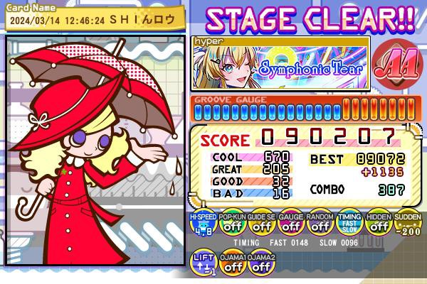 Symphonic Tear(HYPER) 一応90000はいけたけどムズイ
