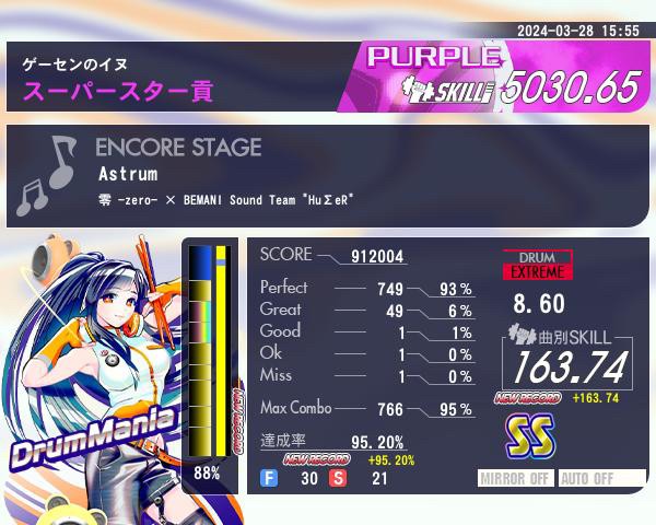 #今日のようやっとる アストラム 赤D 初見で2切りSSランク?! 新規新曲枠金ネ帯強奪! 彡;(●)(●) …なんか稼ぎ過ぎて申し訳ない 傾向は違うけど昼にコケる 紫Dに似た気分