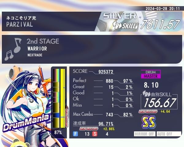 good以下は全部最初のハイハット4連で出た 繋いでたら99%だったのにね