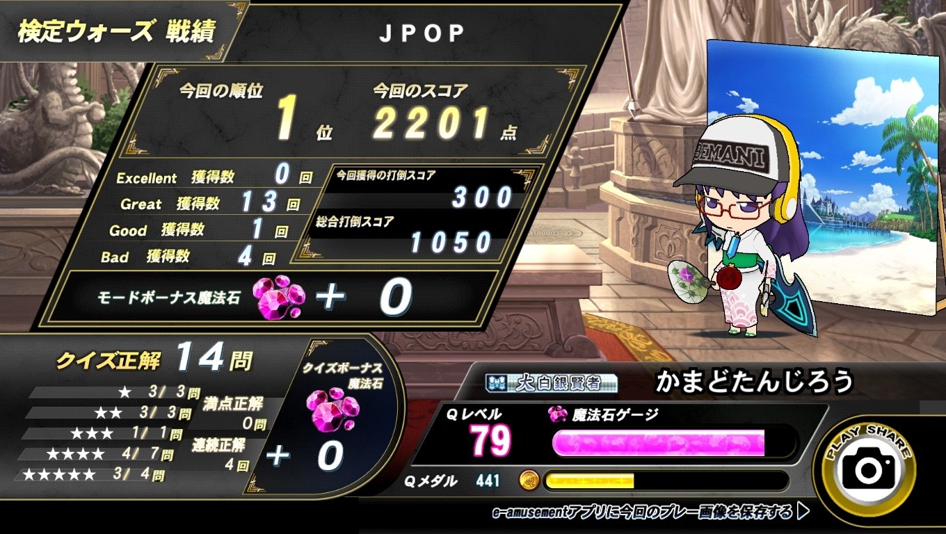 祝賀会は10時からですが先に検定ウォーズを1位で終わらせました。