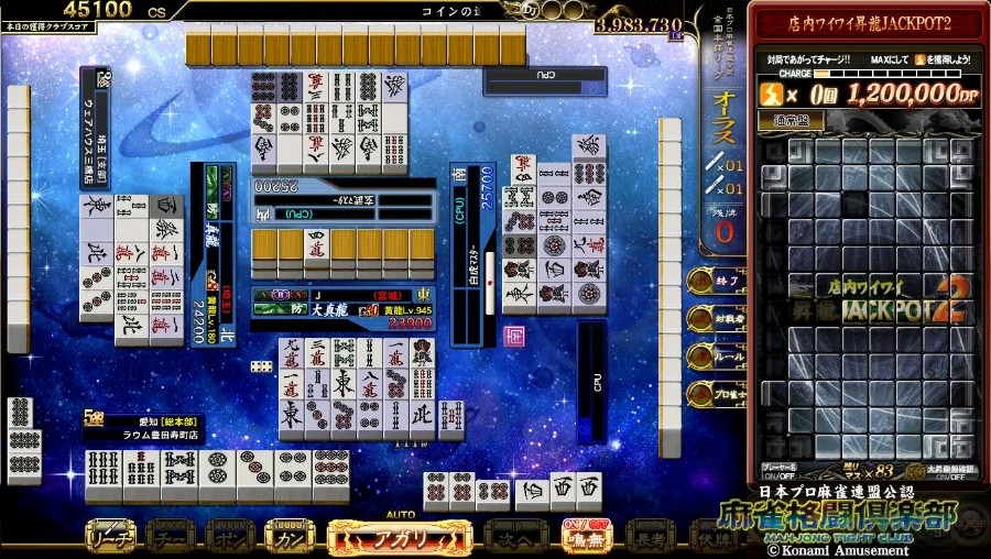 ハイテイのみ 会心のアガりで トップw(*´艸`*) オーラス、形はグチャグチャ 無理矢理ピンズのホンイツに向かう すると下家のCPUから6順目リーチ ホンイツから形式テンパイに 狙いを変更 最後の選択 中ブクれ③ピン単騎 か ⑨ピン単騎 ここまで来て⑨ピンが切れてないのも 気持ち悪い 打③ピン ク◯ラグ… 上家w その後、下家の⑨ピン もちろん役なしで上がれずw そしてハイテイに 対面のCPUw ウマー‼(*´艸`*) 26700点でトップ 加えて真龍オーブもゲット‼ 上家w 普段は亀だけどオーラス、こんな状況なら 何でもするよ この状況は ツッパって振り込んでラスはダメたけど ラス目、かつ罰符で順位が変わるので 何もせず(降りて)ノーテンでラス は、もっとダメ だと思っている なので死にものぐるい、無理くり、無茶した結果がこれ 苦あれば楽あり‼ ではでは