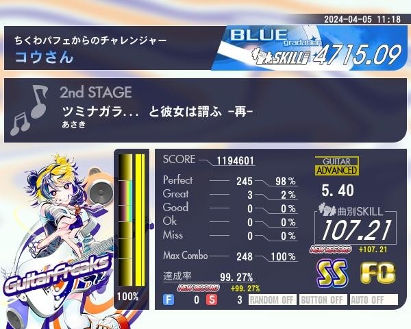 4/5日分、ツミナガラ(黄ギター)をプレイ