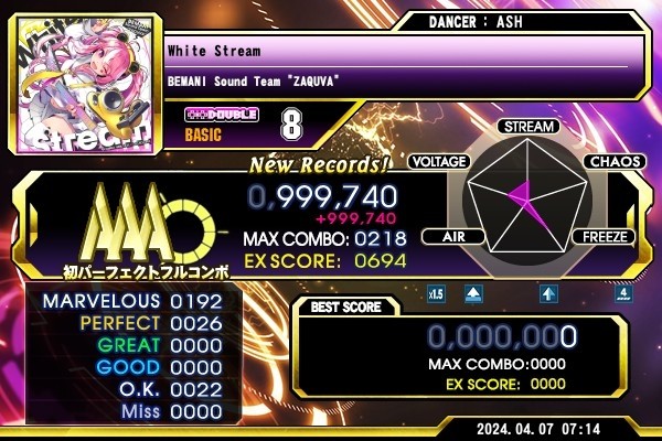 今日の良収穫 いったい何のリズムを取っているのか全然わからんかった。 恐らく4分表記の裏拍は混じってそう。終始目押しだけで運良く一撃PFC!