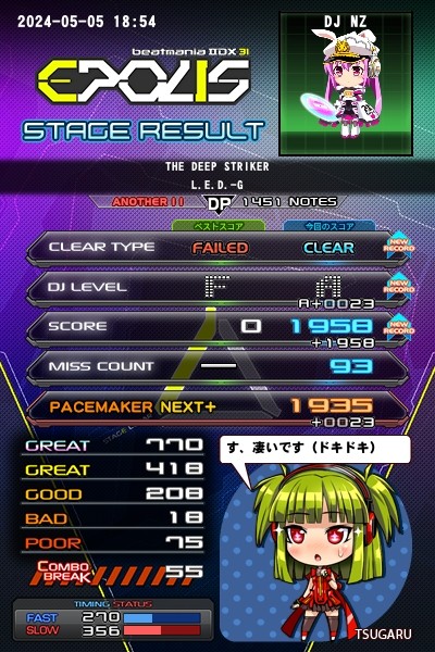 やった!角田さんの曲の中でも一二を争うくらい好きな曲をDP☆11でクリアできた!ほぼ北斗押しだけど、リズムと譜面の特徴がSPの頃から頭にこびりついているから、完全にノリでクリアできたようなもの!これは嬉しい! ところで、セカンドアルバムはまだですか?