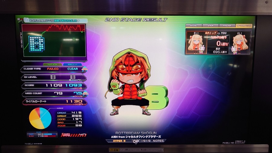 楽曲タイトル ROTTERDAM SHOGUN DPレベル9(正規)。 バージョン SINOBUZ 新規クリアランプです。