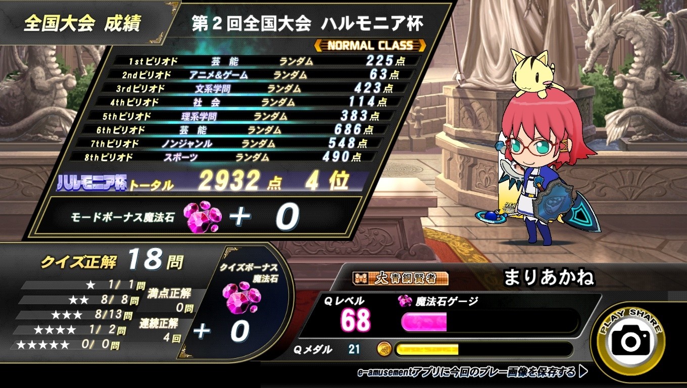 全国大会4回目。ノーマルクラスでバトル。この回はわずかな差で 最下位に終わり、次回イージークラスに降格。