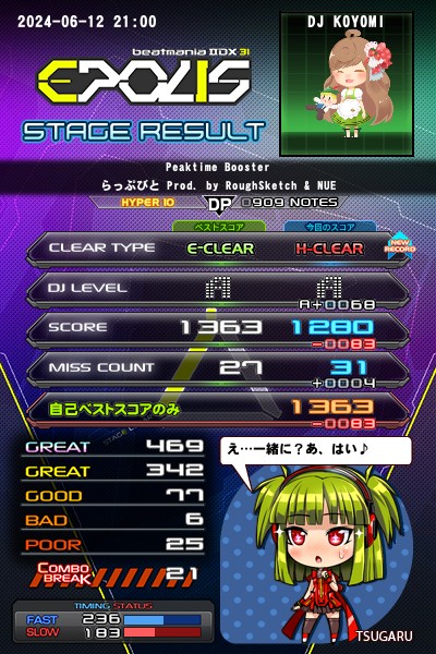ノスタルジアやる前に必ずDPで指ほぐす!最近もう日課なってる…DP何か楽しいというならば、どう運指すれば、おせるようになるかな?と思う。上下鍵盤どう捌くか楽しい… ノスタルジア何か楽しいというならば、幅広い鍵盤で指とジャンプでどう捌くか…と(リサイタル方面…)意外に共通性あるね… DP人口増やしたい、ノスタルジアリサイタルも増やしたい… 今日はランプ一つ更新!満足…してノスタルジア世界へ行った〜