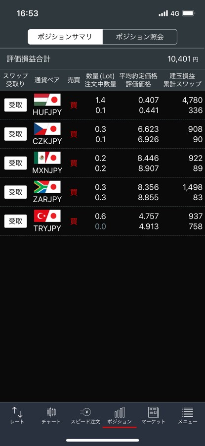 トルコリラの安定から、証拠金比率が10倍から25倍になったのと、スワップポイントが高いので、放置しても良さそうです。