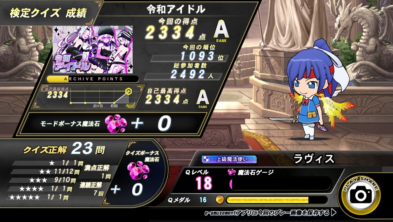 #QMA 令和アイドル検定。 初回プレイでAランクを取れたよ。 初回でAってなかなか難しいよ。大抵Bくらいで終わる。