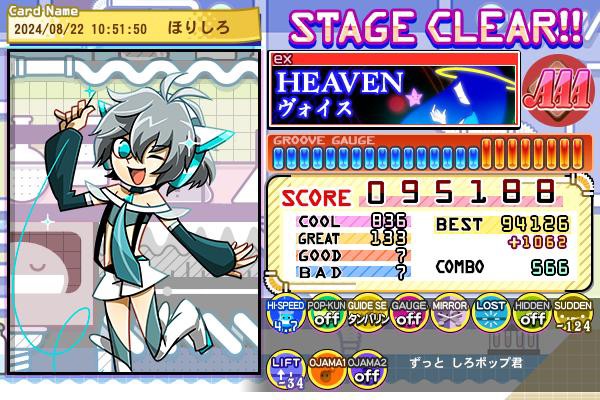 ほりーのしろポップンさんのe-amusementアプリ投稿詳細