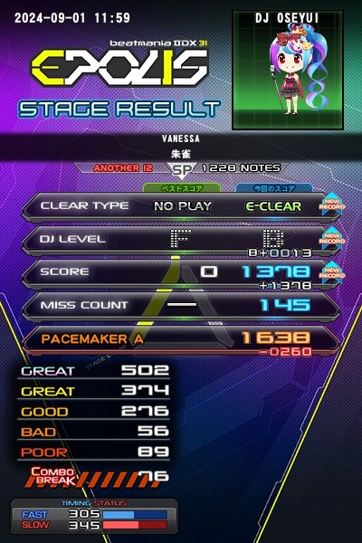 SP☆12 ヴァネッサ よもぎ! ハイパー譜面の流れでランダム使ったけど、これで良かったのか···?(疑心暗鬼)