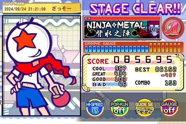 伸びなかったが忍者メタルも初めてフルゲ出来た〜と喜んだ後、休憩して筐体別の所触ったら途端に調子悪くなった…指が動かないというか、この後の筋トレ項目マジでトリルが多いので、すげームキになってはホシオとくやしー!って思ってました(笑)
